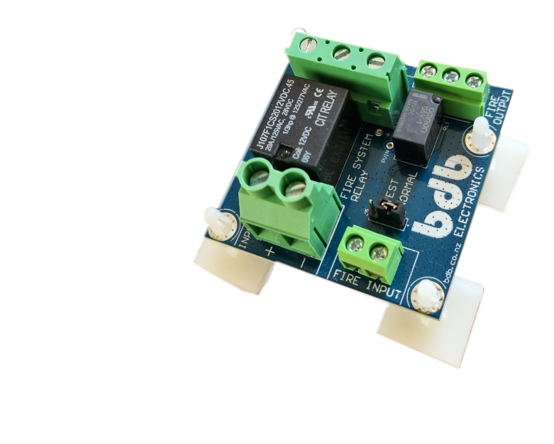 This fire relay integrates with an access control system to provide a reliable fire release mechanism. When the fire contact is shorted, the 10A DC contacts are activated, feeding power to your door's fuse distribution board, a fire activation cuts power ensuring that the doors unlock for emergency egress.